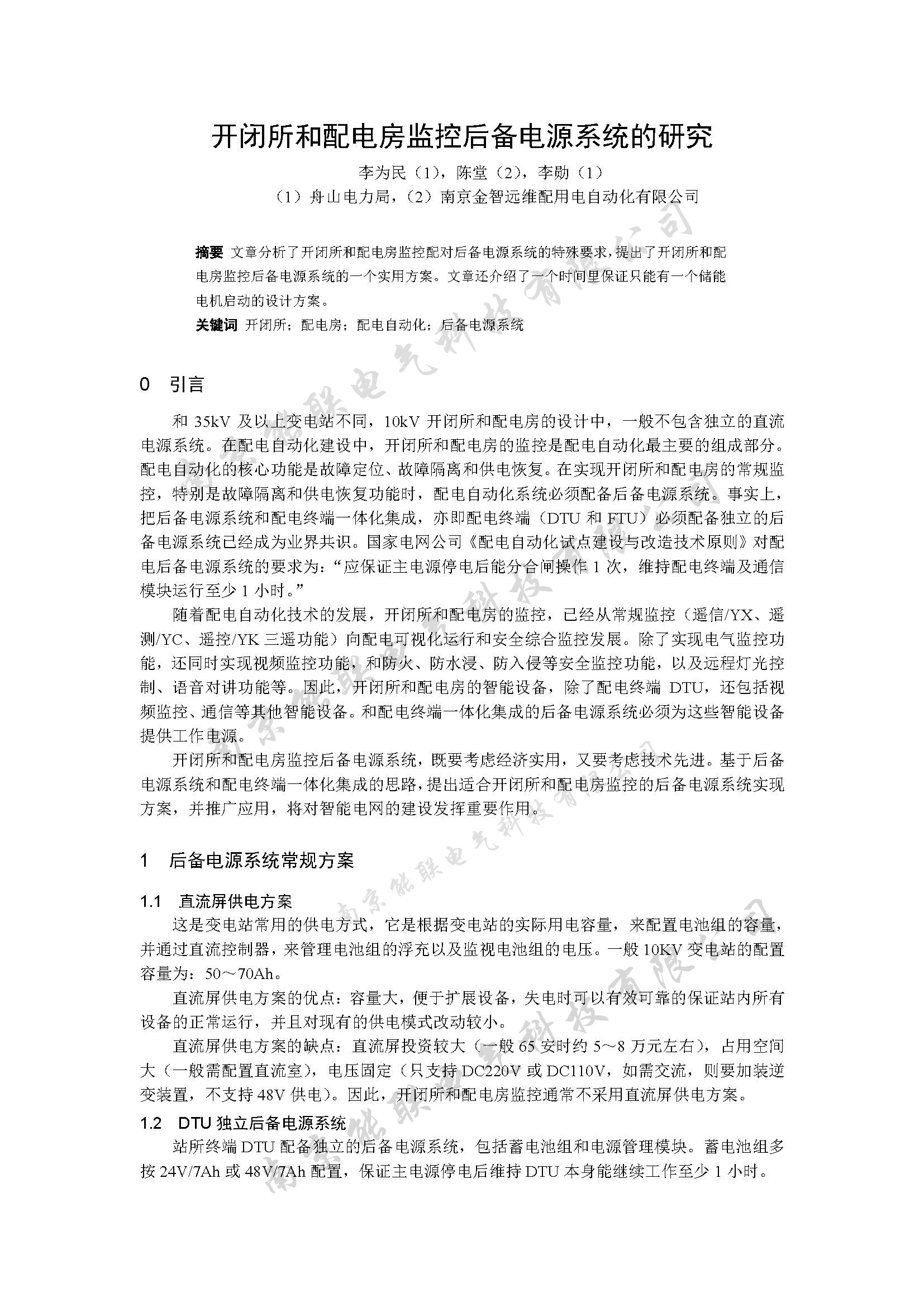 開閉所和配電房監(jiān)控后備電源系統(tǒng)的研究