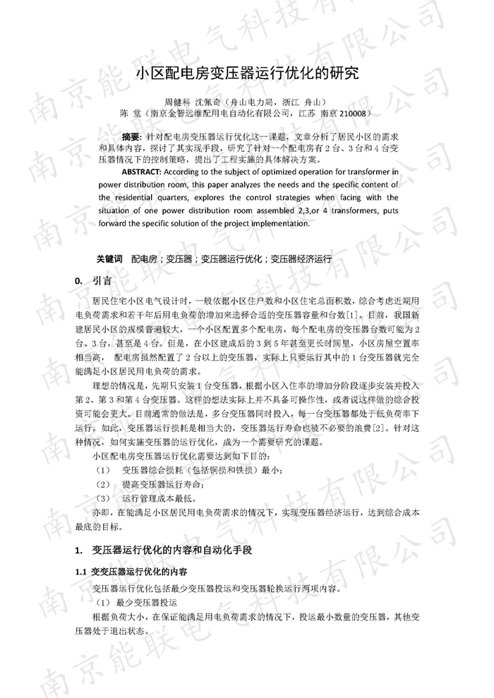 小區(qū)配電房變壓器運(yùn)行優(yōu)化的研究